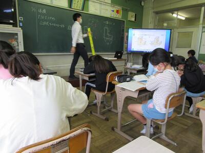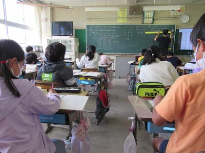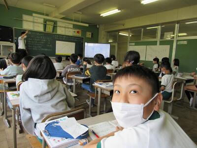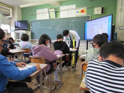 となりの教室も、大画面や拡大した図形を活用して、児童に思考させていきます。