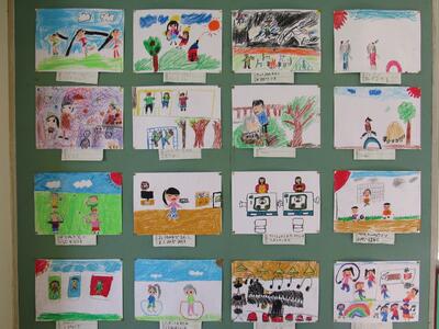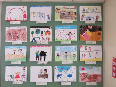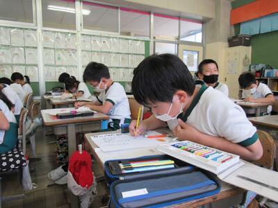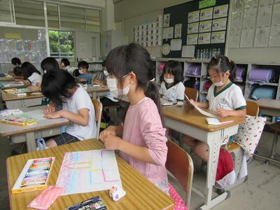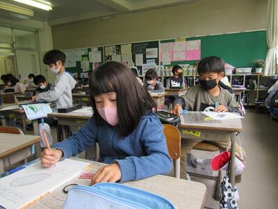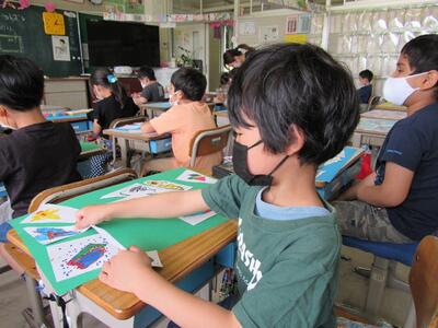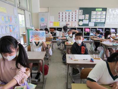 ◆1年生の図工では、こいのぼりの絵が仕上がってきたようだよ。