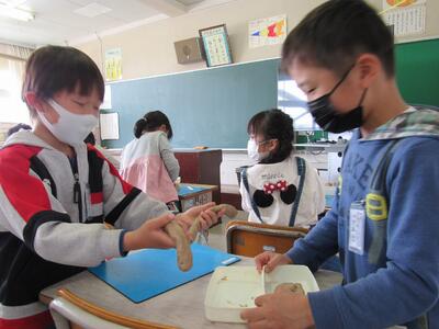 2年生の図工では、ねん土を使って造形遊びをしているよ。