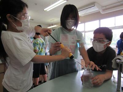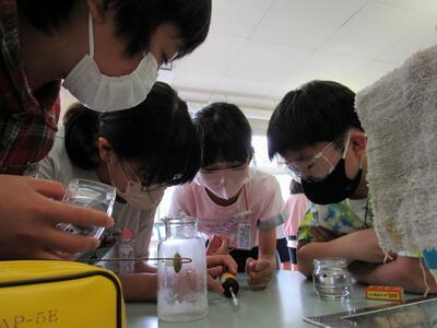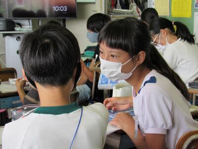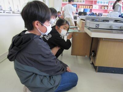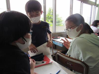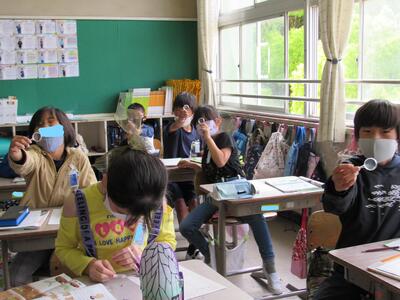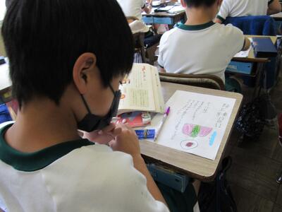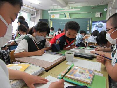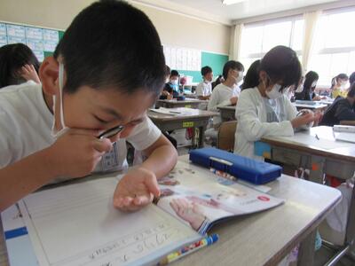 ◆こちらの5年生は、メダカの卵を観察し、考察をしているよ。