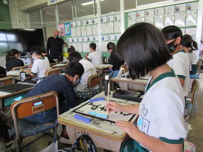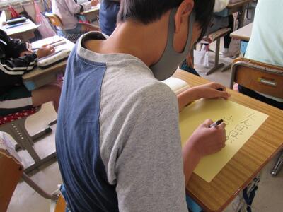 ◆4年生の毛筆は、ひらがな3文字の「よもぎ」を書いているよ。