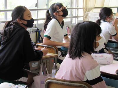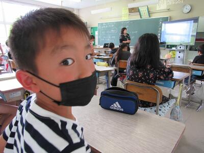 「校長先生が大きく見える~。」 「みんなの目も、とても大きく見えているよ。」
