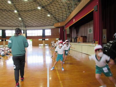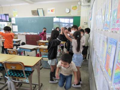 ◆2年生の音楽は、楽しそうに歌いながら歩いているよ。