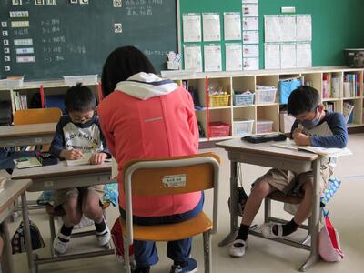 1学級を2つに分け、子どもたちと2人の先生の関わりが多いのが特長。