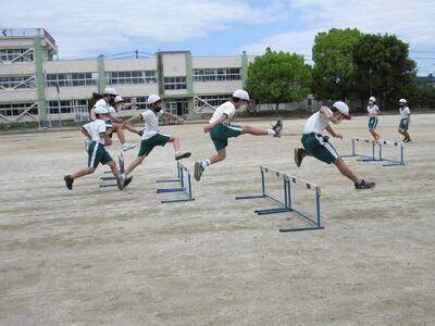 ◆5年生は、本格的なハードル走に挑戦しているよ。