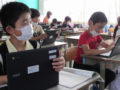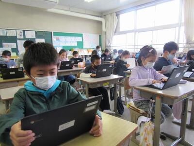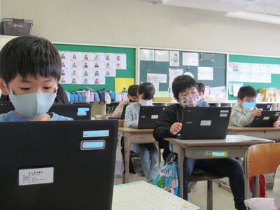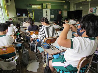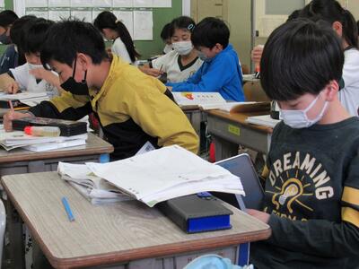 題材になりそうな情報を端末で調べたり、下書きを始めたり、「個別最適な学び」を進めているね。