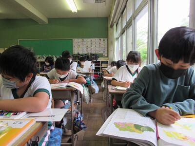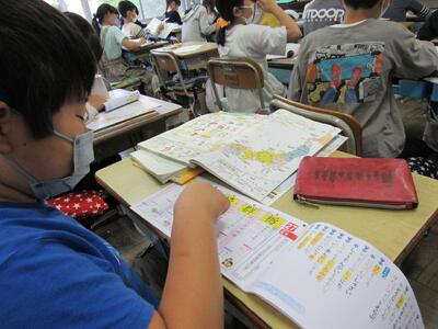 ◆4年生は、白地図作業を通して、埼玉県の土地の様子を学んでいるよ。
