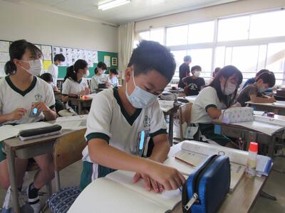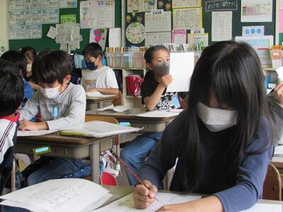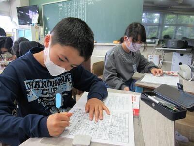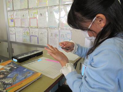 ◆こちらの6年生も、指を折りつつ文字数を考え、俳句を作り始めているよ。