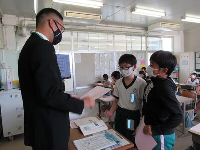 「校長先生、こんなのができました。」 「とってもきれいだね。」