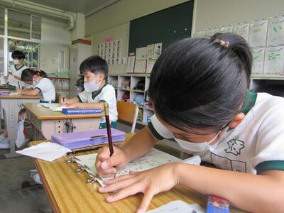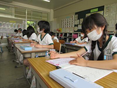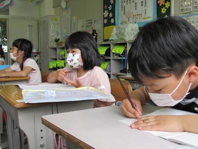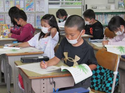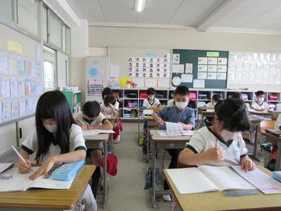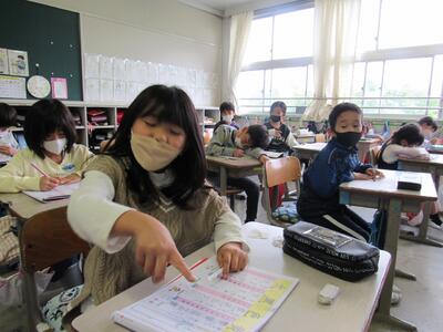 ◆2年生の書写では、硬筆で漢字の学習をしているよ。