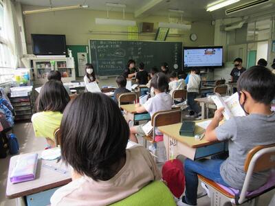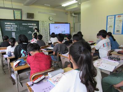 こちらの教室は、学級全体で学び合い、考えの練り上げをしているよ。