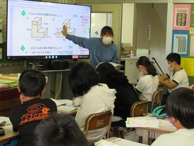 ◆5年生の算数は、3学級で「立体の体積の求め方」を考えているよ。