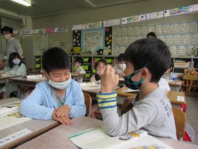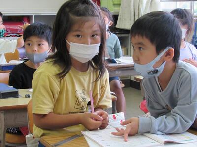「さあ、近くの友達ともう一回、話し合ってみましょうね。」