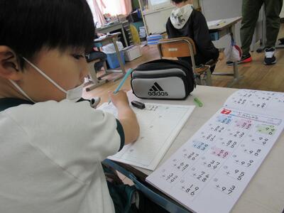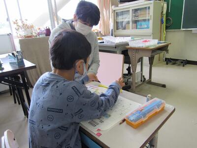 ◆「たんぽぽ・ひまわり学級」の算数は、各学年の課題に挑戦しているよ。