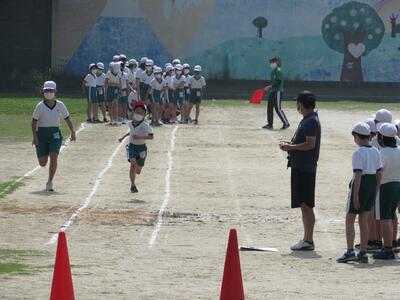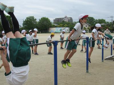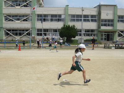 バランスをとって走り抜けているね。となりの5年生のようになれるかな?