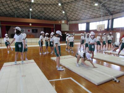 ◆4年生は、新体力テストに向けて「反復横跳び」を始めているよ。