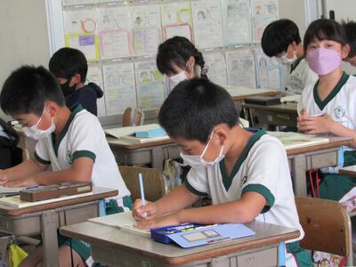 今日のまとめまできました。この集中力は、さすが3年生だね。