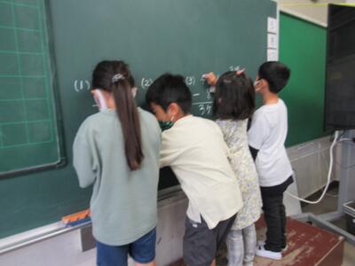 ◆となりの3年生は、算数で割り算を学習しているよ。6年生に追いつけるかな?