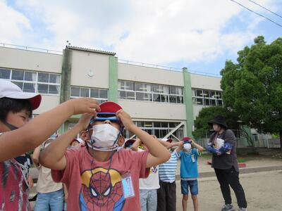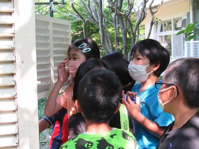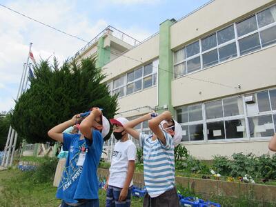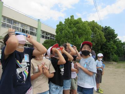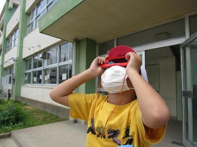 ◆3年生は、太陽メガネを使って、太陽を観察しているよ。