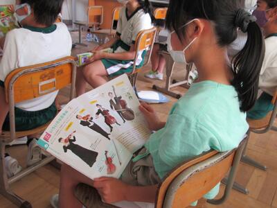 ◆1年生の音楽では、CDに合わせて色々な曲を歌っているよ。