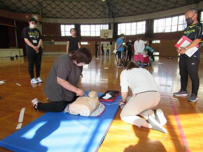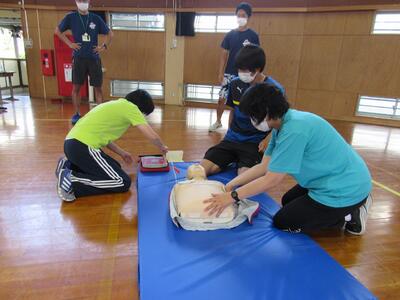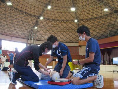 これから始まる水泳指導に欠かせない「心肺蘇生法」について学びます。