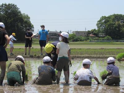 5年生の幸松タイム(総合的な学習の時間)での田植え体験は、その代表ですね。