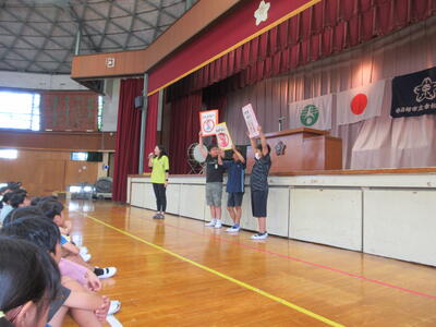 今日は6日(木)に行われる陸上大会の壮行会です。
