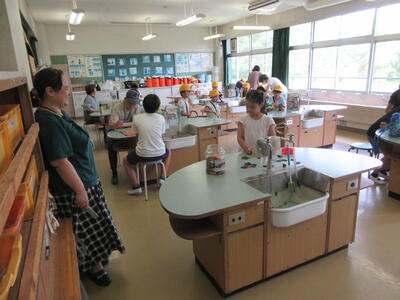 ★教室に戻りざりがにの観察をしました。たくさんは釣れませんでしたがグループでなんとか観察することができました。