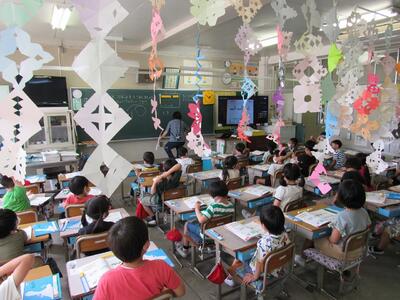 ◆校舎内は、七夕祭りのような感じがしてきます。
