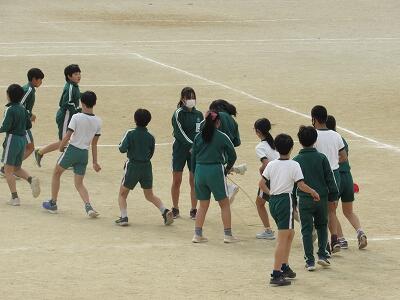 ◆そのころ、6年生たちは、校庭で最後の学年集会として、運動会を再現しているよ。
