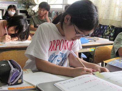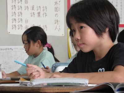 ◆「たんぽぽ・ひまわり学級」の国語では、音読や漢字練習などに真剣だよ。