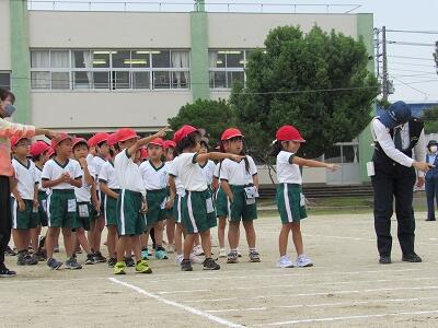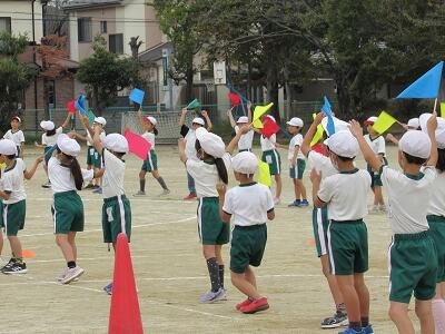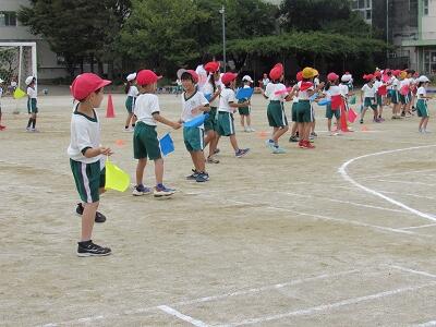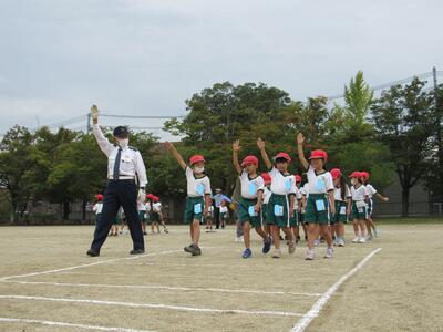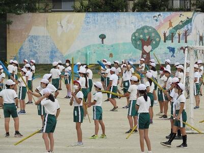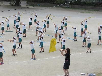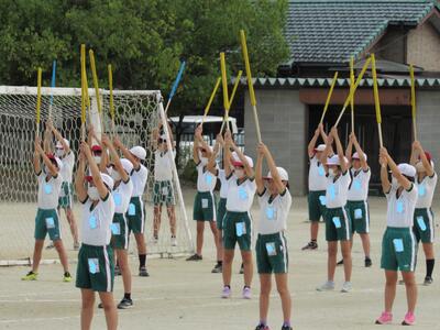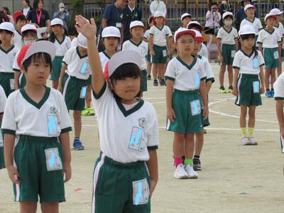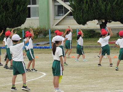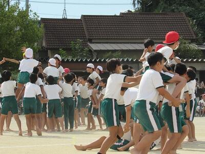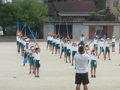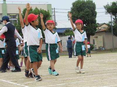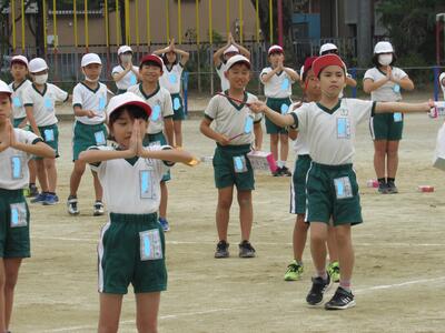 「1年1組〇〇さん基準、体操の体形に開け!」 「1・2・3」