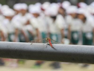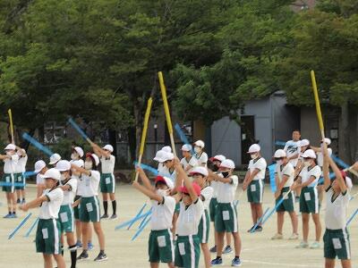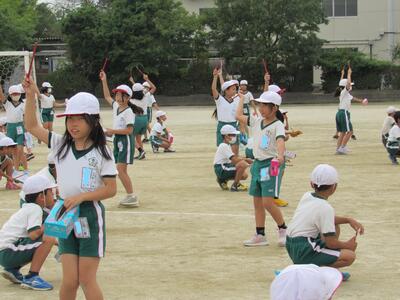 ◆業間休みに、運動会の応援団解散式を行っているよ。