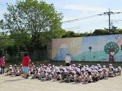 「校長先生、花が甘いんです。」 「ツツジは毒があるものもあるから吸わないでね。」