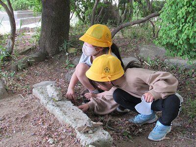 「校長先生、ダンゴムシがいるんです。」 「丸くなっているね。」