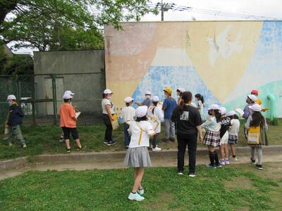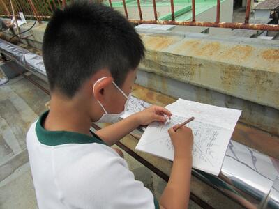 ◆5年生は、屋上から学校の様子をスケッチしに集まっているよ。3年生の社会科かな?
