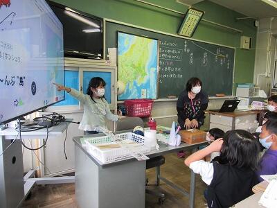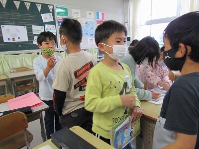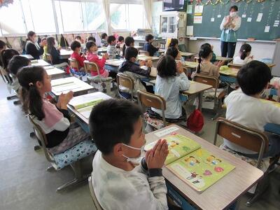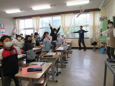 ◆3年生の外国語活動は、DVDに合わせ、体をいっぱいに使ってチャンツを楽しんでいるよ。