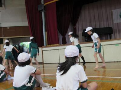 ◆体育館では、3年生が反復横跳びを始めようとしているよ。