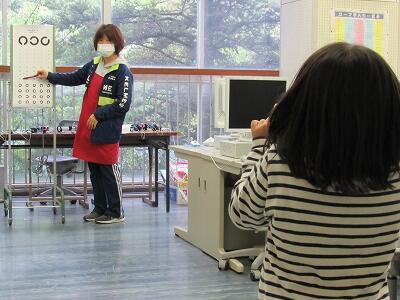 ◆パソコンルーム前を通りかかると、3年生が視力検査中。