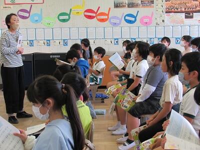 ◆音楽室に来ると、5年生の澄んだ歌声が響き渡っているよ。