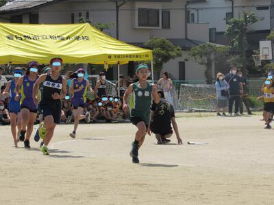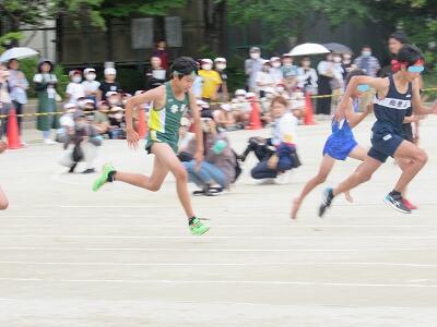 トラックを取り囲む各学校の応援席の前を力強く走っていきます。