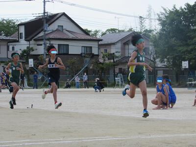 素晴らしいバトンパスで、第1レースのトップでゴールイン!!