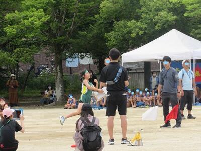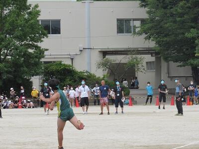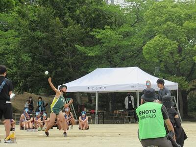 ボール投げの放物線に、お手伝いの児童席から、思わず「すごーい」と声が出ます。