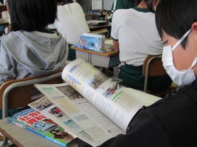 今日は、「ま行」の言葉を教科書や地図帳などを参考に調べているね。
