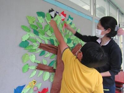 ◆4年生は、人権教育の取組として、折り鶴を折ったり、メッセージを書いたりしているよ。