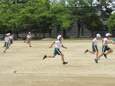 ◆校庭では、1年生がシャトルランに挑戦中!!