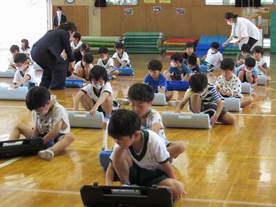 ◆「たんぽぽ・ひまわり学級」は、みんなで楽しく図形遊びをしているよ。