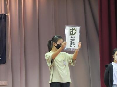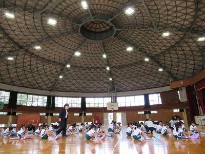 最初は、1年生に「エビ・カニ ダンス」を楽しく教えてあげてるね。見学者もノリノリ。