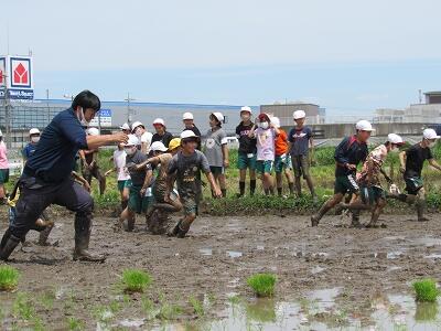 先輩たちから教えられ、楽しみにしてきた田んぼの中での徒競走ですよ。