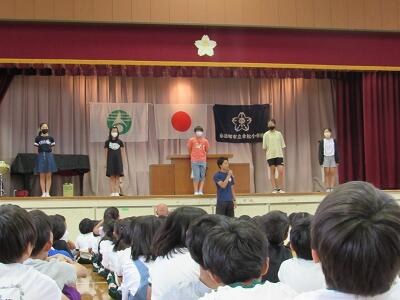 今回は、各委員会の委員長、5・6年生の代表委員を表彰しています。